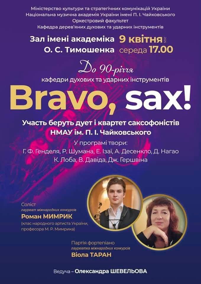 Участь беруть дует і квартет саксофоністів НМАУ ім. П.І. Чайковського